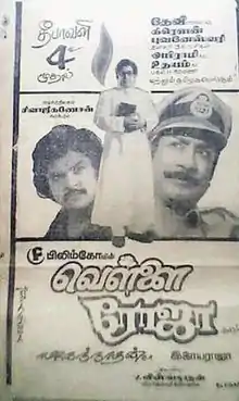 Vellai Roja (transl. White Rose) is a 1983 Indian Tamil-language thriller film, directed by A. Jagannathan and written and A. L. Narayanan. The film stars Sivaji Ganesan, Ambika, Prabhu and Radha.[1] It is a remake of the Malayalam film Post Mortem.[2] Vellai Roja was released on 4 November 1983,[3] and ran for 100 days in 13 centres.[4][5]