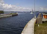 Veluwemeer Aqueduct is a 25-metre (82 ft) long, 19 meter wide, navigable aqueduct (also known as a water bridge) located over Veluwemeer lake in Harderwijk, Netherlands. It was opened in 2002 and bypasses the N302 road.[1]