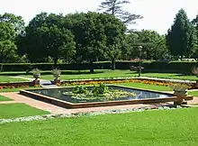 Venning Park is a park in Arcadia, Pretoria, South Africa. The three-hectare park is formally laid out with a sunken garden on the western side of the park and a tea garden, the Heavenly Rose Café, in the middle. The park also features a date palm-lined path and rose gardens on the eastern side near the American Embassy and the Indian High Commission. Annuals are regularly planted on a site between the busy arteries of Pretorius and Schoeman Streets and quieter Eastwood and Farenden Streets.[1]