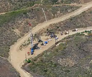 The area was worked initially in 1885, followed by Ventura County Power Company drilling 7 shallow gas wells in 1903. While they reached depths of between 400 and 800 feet (240 m), it is not known if they produced oil.[13] In May 1916 the first commercially viable well, No. "Lloyd" 1, was drilled by State Consolidated Oil Company to a depth of 2,555 feet.[14][15] Initial production consisted of 100 barrels a day.[16] Shell Oil drilled the first well into what is now known as the 2nd Pool, in the Pico Formation, in March 1919, reaching a depth of 3,498 feet (1,066 m).[13]