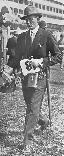 Styled Lord Burghersh from birth, he was the eldest son of Anthony Fane, 13th Earl of Westmorland, by Lady Sybil Mary, daughter of Robert St Clair-Erskine, 4th Earl of Rosslyn. He served in the Royal Navy during the First World War and was present at the Battle of Jutland aboard Lion, Lord Beatty's flagship.[1] Noted as a "sporting peer", he succeeded his father in the earldom in 1922, when he began his association with horse racing. Having always been a keen rider to hounds he now raced as an amateur both on the flat and under National Hunt rules. He also owned and trained racehorses, having a particularly successful season in 1923 when he trained 23 winners. In 1924 Royal Chancellor won him the Scottish Grand National.
