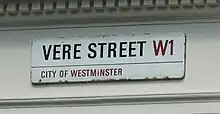 Vere Street is a street off Oxford Street, in central London. It is a continuation of Welbeck Street, and part of the B406. It is named after a family name of the area's owners at the time of its construction, the Earls of Oxford. It is best known for the Marybone Chapel, also known as the Marylebone Chapel or Oxford Chapel, now St Peter's Vere Street. The sculptor John Michael Rysbrack lived and died here in 1770.