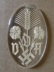During the pre-war years and through World War II, the VDA distributed over 1,200 different donation badges, postcards and other items to raise funds for its charity work. This was done alongside other similar charity drives by organisations such as the Winterhilfswerk (WHW), the Deutsches Rotes Kreuz (DRK/German Red Cross) and others. In the middle of 1930s the organization found itself in dispute with Hitler, as it had more extensive territorial claims against other countries than Hitler was willing to demonstrate in international arena; after the Second World War started in 1939, VDA together with SS was engaged in preparing and carrying out ethnic cleansing in territories conquered by Germany.[7]