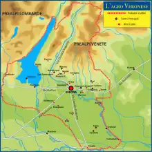 Since its founding, the city of Verona has played a prominent role as the center of connections between east and west and north and south. In particular, its location at the mouth of the Adige Valley, the main communication route between Italy and Germany, allowed those in control of this position to be able to assert themselves in the nearby Lombard and Veneto territories.[6] As a result of this relevance due to its peculiar geographical location and its topographical and economic characteristics, as early as the Roman era Verona became a strategic, well-fortified center, the crossroads of three consular roads: the Via Claudia Augusta, which connected the Danube with the Po, the Via Postumia and the Via Gallica, which connected Aquileia with Genoa and Turin, respectively.[7]