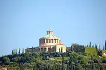 With the improvement of artillery, the defenses had to be made efficient again according to the new defensive criteria of modern-style fortifications. Thus, in 1530, the well-known Renaissance architect Michele Sanmicheli was called upon by the Venetian Republic and commissioned to rebuild the curtain wall to the right of the Adige River, as well as to carry out a general overhaul of the city's defensive system.[9] His works remained essentially unchanged until the entire eighteenth century, as the Serenissima experienced a long period of peace that ended only with the arrival of Napoleon Bonaparte, who occupied Verona in 1796. The French and the Austrians contested the city and in alternating phases tried to restore the curtain wall and build temporary field works, of which no trace remains.[10]