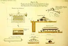 For the general needs of the army, the following were completed: a provision establishment with regard to the wartime supply of the army; buildings and establishments for the country artillery; the pioneer barracks, with warehouses and depots for bridge equipment; warehouses and depots for the siege artillery park, with associated equipment and materials, as well as barracks for artillery and engineer troops assigned to siege operations; a large army hospital; warehouses and depots for accompanying equipment; large production arsenals with foundries and drill benches.[39]