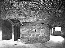 For security issues, both wartime magazines, equipped with bomb-proof vaulting construction technology, and peacetime magazines, equipped with ordinary structure, were built in the stronghold. The location of the latter was relegated to the open countryside to preserve the city from devastation in the event of explosions due to lightning, fire or bombing. In the imminence of a conflict, however, the powders contained in them had to be transferred inside the fortified city, to the wartime magazines; these were then covered with a bomb-proof vaulted structure, that is, one capable of resisting enemy artillery strikes in the event of siege or bombardment.[39]