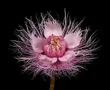 • Verticordia insignis subsp. eomagis A.S.George has longer sepals 7–9 mm (0.28–0.35 in), slightly longer petals 3.5–5 mm (0.14–0.20 in), longer stamens 5–6 mm (0.20–0.24 in) and a longer style 6–7 mm (0.24–0.28 in) than the other two subspecies.[2][8]