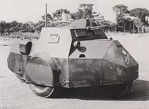 The Vespa-Caproni armoured car was an Italian military vehicle, designed by the aircraft manufacturer Caproni. Only one prototype was built, which was tested on February 2, 1942 at the Motor Study Center.[1] The vehicle never entered serial production.