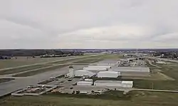 The airport covers 1,300 acres (526 ha) at an elevation of 472 feet (144 m). It has two runways: 2/20 is 8,012 by 150 feet (2,443 x 46 m) asphalt; 11/29 is 4,997 by 100 feet (1,523 x 30 m) asphalt/concrete.[1]
