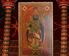 Vettakkoru Makan (Malayalam: വേട്ടക്കൊരുമകന്‍) is a Hindu deity worshipped in parts of Northern Kerala. This deity is alternately referred as Kiratha-Sunu (son of Kirata) in Sanskrit.[1][2] Vettakkorumakan is believed to be the son of Shiva by his consort Parvati, born when he assumed the form of a Kirata (hunter) to deliver a weapon known as Pashupatastra to Arjuna. He is mostly and exclusively worshipped in Malabar region of Kerala. The most famous temple of this deity is the Balussery-Kotta Vettakkorumakan temple about 25 km from Calicut. This was once the fort of the Rajas of Kurumbranad. Other prominent temples are at Ramanthali, Nileshwar, Kottakkal, Nilambur, Karaparamba and various places in Kannur district and Kasargod district. He is the family deity of the Rajas of Chirakkal, Nileshwar, Kottakkal, Nilambur Kovilakam, Kalathil Kartha's, Aluva, Amarambalam Kovilakam and Randu Illam Vargam Nambiars. Those families among the nobility of Malabar who have Vettakkorumakan as their family deity are connected in one way or other incidentally to either Balussery Fort or Kurumbranad.Later he moved to Kottanachery temple in Vellur, Payyanur in North Malabar. A special type of firecracker called "Kathina" was his favourite.