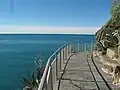 La via dell'Amore or The Way of Love is a pedestrian path overlooking the sea, with a length of just over one kilometer, linking the villages of Riomaggiore and Manarola, Cinque Terre, in Liguria, Italy. It is one of four sections of the Sentiero Azzurro, "the Blue Path", the most popular hiking trail in the Cinque Terre National Park.[1]