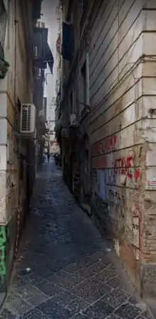 The Vico, and Vicoletto, dei Zuroli, also called Vicolo dei Zurli (Vicolo de' Zurli)[1] are two historic alleys in the city of Naples, they are located near via Forcella (Furcella in Neapolitan) in the historic center of the city, they are located near via Forcella (Furcella in Neapolitan) and near the church of Pio Monte della Misericordia (since 2005 an art museum and historic site in Naples), between Via dei Tribunali and Via Vicaria Vecchia, in the Pendino district.