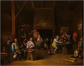 Victor Mahu (born Antwerp, 23-10-1647 (church of Saint Jacob), fl 1689 - 1700) was a Flemish painter active in Antwerp who specialized in genre painting. He is mainly known for his genre scenes of drinkers, card and board game players, dancers, musicians, peasants, cooks, and maids placed in tavern or kitchen interiors.[1]