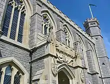 The school occupies an extensive area on the hills above Saint Helier and facing the bay of Saint-Malo. The neo-gothic main building, finished in 1852, remains in use and houses the great hall, libraries and administrative areas.[34] Newer developments including classrooms, a music centre, science suite, design and technology suite, computer suites, theatre and sixth form centre surround the historic building.[34] The school shares some of its facilities with the Jersey College for Girls located on the adjacent site.[5]