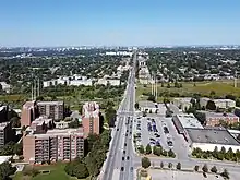 It remains a two-lane residential street past Bracken Avenue north to Gerrard Street, albeit one with a heavy traffic load; at Gerrard Street it becomes a four-lane major arterial road. It reduces to two lanes again from a point north of Danforth Avenue to Dawes Road, then returns to four lanes for rest of its length.[2] North of Dawes it shifts from being a residential street to being a suburban arterial, with mostly stores and low rise apartment buildings along the rest of its length. North of McNicoll Avenue the route is a mixed commercial and light industrial street.