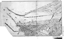 In May 1829 Captain Charles Fremantle raised a flag on the south head of the Swan River taking formal possession in the name of His Majesty King George IV of all that part of New Holland, that the continent of Australia was called until the 1850s, which was not included within the territory of New South Wales.[6] In 1843 work started on a channel through the rock bar at the mouth of the Swan River; this was followed by the construction of a river jetty at the end of Cliff Street, known as the North Jetty. In 1866 the construction of the first bridge across the Swan River created the eastern boundary of the harbour.[7]