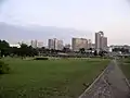Until 1980, it was called the Park Highway. For a long time, the northwest center of Minsk along the right bank of the Svislach tributary of the river Berezina was poorly populated. The active development of the initial section of the Park Highway began in the 1960s. The modern avenue was created in 1980 as Masherov Avenue in honor of the leader of Soviet Belarus Petr Masherov. It was renamed to Victors Avenue in honor of the 60th anniversary of the end of World War II in 2005. In the 21st century, construction of a number of high-rise buildings were built on the avenue.[1] In 2008, the construction of a residential complex "Slavyanskiy Kvartal" began.[2][3] In 2012, the Deputy Minister of Architecture and Construction spoke out in support of the construction of a whole complex of skyscrapers on the initial section of the avenue.[4] From 2011-2013, with the involvement of workers from North Korea, the Palace of Independence was built in the middle of the avenue, which later became the main residence of President of Belarus.