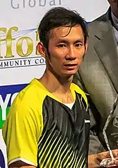 Trang first competed on 12 August, when she played against Nozomi Okuhara of Japan in the Women's singles event.[30] She ultimately lost to Okuhara after the two-game match, with the score of 2–0 (10–21, 8–21).[30][31] She went on to win over Lindaweni Fanetri of Indonesia two days later, with the score of 2–0 (21–12, 21–11).[30][32] Despite finishing in second in the Group J and failing to advance to the Round of 16, Trang still fulfilled her personal goal of getting a winning match.[33] Minh competed in the Group E in the Men's singles events, starting with the three-game match against Russia's Vladimir Malkov on 11 August.[34][26] Minh won the match with the score of 2–1 (15–21, 21–9, 21–13).[26][34][35] He scored his second win in the match against Austria's David Obernosterer the following day, with the result of 2-0 (21–18, 21–14).[26][36][37] In the final group match on 14 August, Minh played against Lin Dan of China, who had won six previous contests with Minh.[38] Lin ultimately won the match with the score of 2–0 (7–21, 12–21).[26][39][40] Despite considering the 2016 Summer Games as his final time at the Olympics,[28][41] Minh was still chosen to compete in 2021.[42]