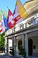 On occasion of the construction of the so-called linksufrige Seeuferbahn (literally: left lakeside railway) in 1872, the spacious estate lost the direct access to the lake. Alfred Escher died in 1882, and he inherited the estate to his daughter Lydia; after her suicide in 1891, the estate was the base to establish the Gottfried Keller Foundation and was bequeathed to the Swiss Confederation (Eidgenossenschaft). The Federal Council acted as the administrator of the foundation, and planned to sell the estate, to meet Lydia Escher's conditions attached to the gift. When this became known, prominent Zürich citizens formed a committee to save the park for the public use. As the city government was unable to raise the money to buy the estarte, the city's population bought shares for the rescue of the park, and within some days the required capital was provided. To finance the maintenance, the Belvoirpark-society (Belvoirpark-Gesellschaft) sold along the Seestrasse road some building plots. In 1901 the city of Zürich was able to take over the property, and thanked its citizens to have prevent the appalling loss of unsheathed. The villa was rebuilt in 1925 to host the then Hotel- und Wirtefachschule mit Restaurantbetrieb Belvoir.[1] As of today, the villa also is used by the Wollishofen guild, but it primarily houses the restaurant Belvoir Park which is operated by the students of the hotel management school Belvoirpark Hotelfachschule.