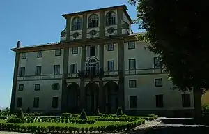 Villa Rufinella is situated highest of the villas on the hill above the town of Frascati. It was built by Alessandro Ruffini, bishop of Melfi, in 1578, but during its history, the proprietors have made changes in different parts of it. In 1773 the villa became property of the pope. Architect Luigi Vanvitelli, commissioned by the Jesuits, gave the building its present appearance.[1]