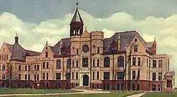 The Visitation Sisters came to Rock Island from Maysville, Kentucky in 1898.[3] They established a school on Fifth Avenue near Sacred Heart Church. Because of the success of the school, they chose to build a larger school and bought property on Ball's Bluff at the edge of Highland Park. The first part of the complex opened in 1901. Within five years the school had grown to 60 boarders and a larger addition was built to expand the school. The older section of the building housed the convent and the new section housed the dormitories, classrooms, and chapel. A chaplain's bungalow was added to the property in 1919. The east wing of the building, known as Lewis Hall, was built in 1929 and contained classrooms and a gymnasium. This expansion was funded by Frank Lewis and a fundraising drive led by Thomas P. Sinnett.[4]