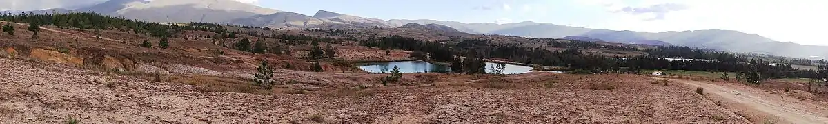 Near Villa de Leyva are several other sites of interest. The valley in which the town is located is rich in fossils from the Paja Formation (Cretaceous era), the most famous being a near-complete Monquirasaurus discovered in 1977 about 3 miles (4.8 km) west of Villa de Leyva. Known simply as El Fósil, the fossil was left in situ where it was discovered and a museum was built around it: another smaller Monquirasaurus fossil was discovered nearby and brought to the museum to be displayed alongside the larger specimen.[3] In the same formation the fossil ichthyosaurs Platypterygius sachicarum and Muiscasaurus catheti and the brachiosaur Padillasaurus leivaensis and pliosaur Brachauchenius, later reclassified as Stenorhynchosaurus, have been discovered.[7][8][9][10]