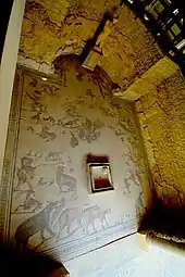 The Villa Romana del Casale (Sicilian: Villa Rumana dû Casali) is a large and elaborate Roman villa or palace located about 3 km from the town of Piazza Armerina, Sicily. Excavations have revealed Roman mosaics which, according to the Grove Dictionary of Art, are the richest, largest and most varied collection that remains,[1] for which the site has been designated as a UNESCO World Heritage Site.[2] The villa and artwork contained within date to the early 4th century AD.