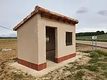 Villamelendro de Valdavia bus station at the crossroads of the provincial road P236 with the PP-2454 road, called "camino vecinal", 800 m. from the village centre.