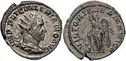 Emperor Trajan (98-117) was headquartered here during the Dacian Wars. It became a colonia with minting privilege in 239 AD, during the rule of Gordian III (238-244), and housed the Legion VII and Legion IV.[11] Other Roman emperors who visited Viminacium include Philip the Arab, Trebonianus Gallus, Constantine the Great and Julian the Apostate.[9]