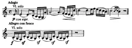- ↑ See The Concerto was at the request of Hubert Léonard as a competition test piece for the Brussels Conservatory. Hofmeisters Monatsberichte (January 1862- implying most likely an 1861 publication date for receipt by Hofmeister's magazine in early 1862.) RISM also confirms this earlier date - they give 1858–1860 - according to a description of the autograph, held at Bibliothèque royale de Belgique, Bruxelles - see RISM.