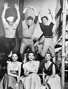 A European stage tour of Oklahoma! (headlined by Shirley Jones and Jack Cassidy)[4] followed in the summer of 1955 with stops in Paris, Rome, and London, and the film opened in its first-run Todd-AO 70mm engagements in October. Virginia returned to the role of Jean MacLaren for several revivals of Brigadoon, most notably at New York City Center in 1957 and 1963. She also appeared in the live “Producers’ Showcase” NBC broadcasts of Bloomer Girl and Jack and the Beanstalk in 1956.