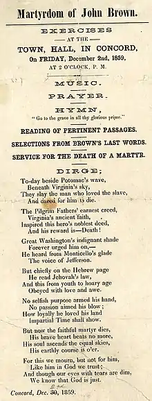 - 1 2 Redpath, James (1860). "Services at Concord". Echoes of Harper's Ferry. Boston: Thayer and Eldridge. pp. 437–454, at pp. 451–454.