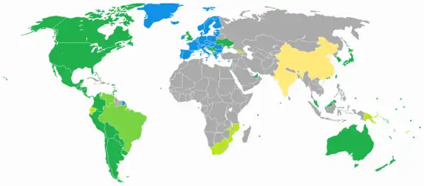 - ↑ Except Brazil, Georgia, Kosovo and Venezuela.