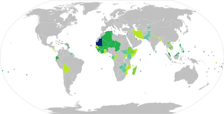 Visa requirements for Mauritanian citizens are administrative entry restrictions by the authorities of other states placed on citizens of the Mauritania. As of 15 July 2023, Mauritanian citizens had visa-free or visa on arrival access to 58 countries and territories, ranking the Mauritanian passport 84th in terms of travel freedom according to the Henley Passport Index.[1]