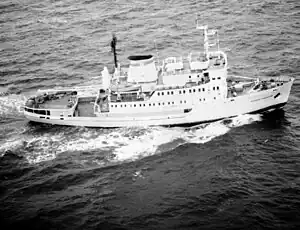 In the mid-1950s, the Soviet Union began developing a new diesel-electric icebreaker design based on the 1942-built steam-powered icebreaker Eisbär to meet the needs of both civilian and naval operators. Built in various configurations until the early 1980s, the Project 97 icebreakers and their derivatives became the largest and longest-running class of icebreakers and icebreaking vessels built in the world. Of the 32 ships built in total, the single-vessel Project 97B subclass featured a longer hull, additional facilities for hydrographic surveys, increased accommodation, and a helipad.[1]