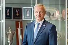 Vladimir Nikolayevich Krechin (Russian: Владимир Николаевич Кречин; born March 23, 1975) is a Russian former professional ice hockey player who played in the Russian Superleague (RSL).[1] Krechin was drafted in the fifth round of the 1993 NHL Entry Draft by the Philadelphia Flyers and he played three seasons of junior hockey in North America for the Windsor Spitfires of the Ontario Hockey League before returning to Russia.[2] He played eight seasons in the RSL for Traktor Chelyabinsk, Mechel Chelyabinsk, Lokomotiv Yaroslavl, and Metallurg Novokuznetsk.[1] He was the general manager of the HC Kunlun Red Star for their inaugural season in 2016–17.[1]