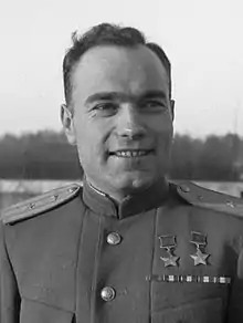 Vladimir Dmitrievich Lavrinenkov (Russian: Владимир Дмитриевич Лавриненков; 17 May 1919 – 14 January 1988) was a fighter pilot in the Soviet Air Forces who became a flying ace during the Second World War and was twice awarded the title Hero of the Soviet Union.[1]