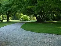The estate changed owners several times; the Bonhomo family was followed by the Burger family, then the Gozani family, and in 1882 it came into the ownership of Ferdinand Souvan. He rebuilt the mansion in 1885 and planted a park encircled by walls. His son Leon Souvan enlarged the park by pulling down the walls and planted around 12 hectares with domestic and exotic trees. In place of the demolished walls he planted a beech tree hedge at the south and southwest edge. The park was a venue for Slovene impressionists, including Matija Jama. The 300-year-old mansion was plundered and burned by the Partisans on 15 April 1944.[2][3] After Leon Souvan died, the park came under the management of the Faculty of Agriculture and Forestry in 1952, today the Biotechnical faculty, University of Ljubljana. The collaboration with the university ended in 1965.