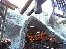 In 2014, the queue line was upgraded with a new loading station to help increase the riders per hour. Guests would now climb down the former Fast Lane entrance staircase to access the new station. The new Fast Lane entrance was located in the Expedition Gear gift shop, where guests exited the ride. Several wooden logs were attached to a black gate in the switchback area to separate the entrance and exit paths. This area received some new television screens as well. Plus, the unloading side of the station had fake rockwork.[16][17]