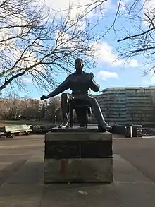 On the base of the statue a quote from Heinrich Heine can be read: "We do not seize an idea but the idea seizes us and enslaves us and whips us into the arena like forced gladiators to fight for it."