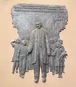 Memorial plaque to the Polish writer Janusz Korczak at Volodymyrska Street, 49a.