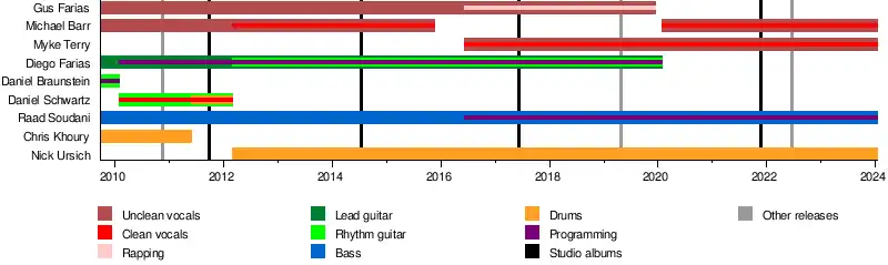 • Gus Farias – unclean vocals (2009–2019); rapping (2016–2019)