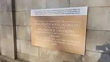 Plaque on the wall of Manchester Royal Infirmary