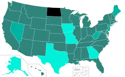 Voter registration in the United States is required for voting in federal, state and local elections. The only exception is North Dakota, although cities in North Dakota may register voters for city elections.[1] Voter registration takes place at the county level in many states and at the municipal level in several states. Most states set cutoff dates for voter registration and to update details, ranging from 2 to 4 weeks before an election; while a third of states have Election Day or "same-day" voter registration which enables eligible citizens to register or update their registration when they vote before or on election day.