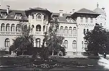 The extensive lot was bought by Tsar Ferdinand I in 1898[2] and was situated just outside Sofia whereas nowadays is inside the city proper. There is a large park and two buildings, the first one built in 1904 as a two-story hunting lodge commissioned to Georgi Fingov, and the second constructed mainly between 1909 and 1914 as a palace, both with money from the state budget. The earliest building in the complex, the hunting lodge, has been described architecturally as an "exquisite interpretation of the Plovdiv baroque with Viennese decorative elements".[3]