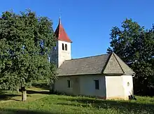The local church built outside the settlement to the northwest is dedicated to Saint Margaret (Slovene: sveta Marjeta) and belongs to the Parish of Žužemberk. It is a medieval building that was restyled in the Baroque style in the early 18th century.[3]