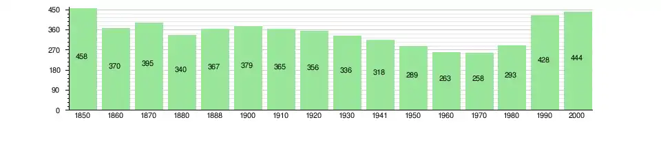 As of 2000, there were 187 private households in the municipality, and an average of 2.4 persons per household.[8] There were 54 households that consist of only one person and 15 households with five or more people. Out of a total of 188 households that answered this question, 28.7% were households made up of just one person and there was 1 adult who lived with their parents. Of the rest of the households, there are 57 married couples without children, 60 married couples with children. There were 10 single parents with a child or children. There were 5 households that were made up of unrelated people and 1 household that was made up of some sort of institution or another collective housing.[9]