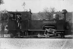 The three tank locomotives were derived from the Ts 4 and adapted to the gauge of 750 mm (2 ft 5+1⁄2 in). The wheelbase, however, was extended to 4.5 m (14 ft 9+1⁄4 in). Unlike the meter-gauge Ts 4, the fourth axle under the driver's cab was positioned at a large distance from the third axle. The locomotives had two inside cylinders arranged at an angle. They worked on the second axle, which was firmly located in the outer frame and which was designed without flanges. The valve gear, the two valve boxes with the slide valves and the motion were attached outside of the frame. The valve gear was of the Klose type and therefore had levers arranged according to the pattern of a double parallelogram. It was located below the large cutout in the water tank above the second axle. The first and fourth axes were swivelled in via the third axle, which could be moved laterally by ±31 mm (1+7⁄32 in), according to the radius of the track curve by shortening or lengthening the coupling rods using the levers in the parallelograms according to the curve.