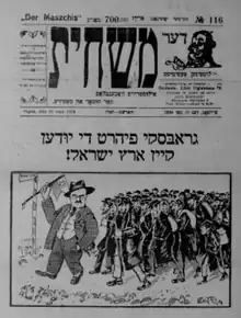 1924 Yiddish cartoon depicting "Grabski's Aliyah"